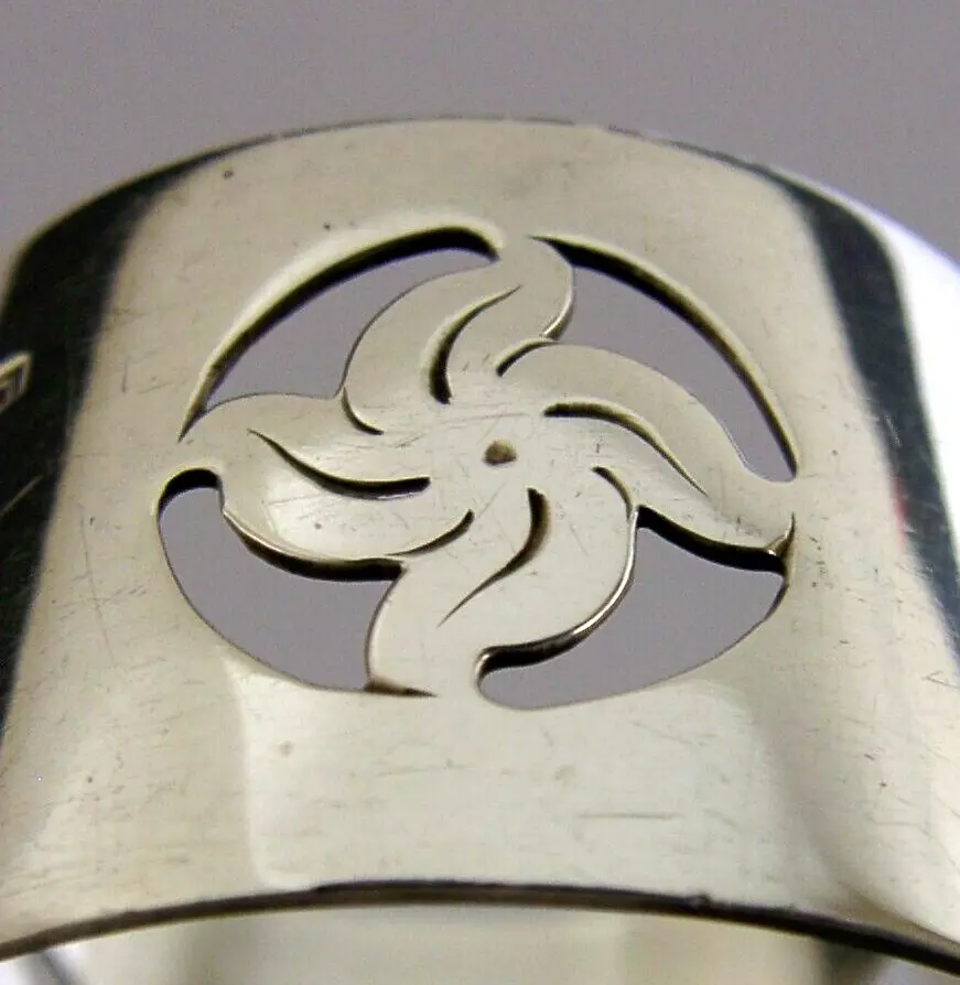 FLOWER PIERCED ENGLISH SOLID STERLING SILVER ART DECO NAPKIN RING 1945