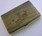 A beautiful sterling silver gilt and agate snuff or table box. It is hallmarked for London 2002 with the makers marks bring JJS . It has been superbly made having a banded agate top bearing an intaglio image of a stag. It is in outstanding condition being free from dings splits holes and repairs, no chips or cracks to the agate. It measures 3 inches (7.4cms) across by 2 inches (4.8cms) by 1.3cms tall and weighs 75 grams. A stunning example.