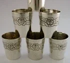 6 SOLID SILVER 150g SHOT SCHNAPPS TOT CUPS c1940 BARWARE ROSES