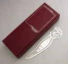 A very stylish English solid sterling silver bookmark or page maker. It is hallmarked for London 2000 with the makers mark being ANH . It has been superbly designed being made to mark the millennium. It is in super condition being free from dings splits and repairs. It measures approx. 4 inches (10cm) long by 1.25 inches (2.8cm) wide and weighs 10 grams excluding the box. A superb piece.