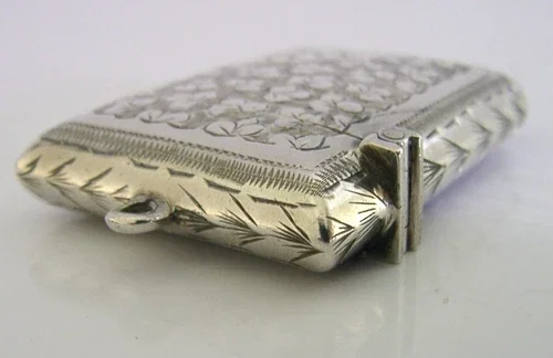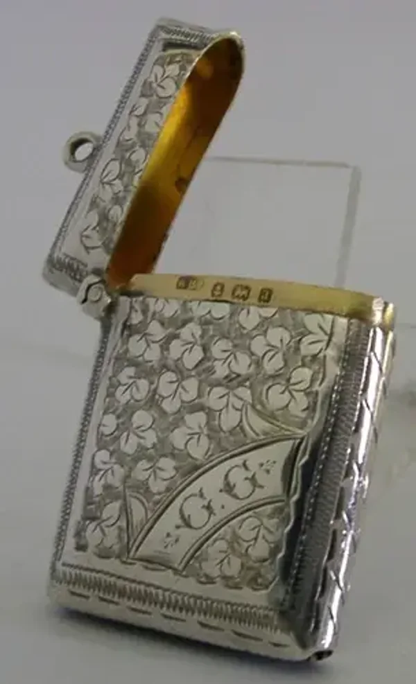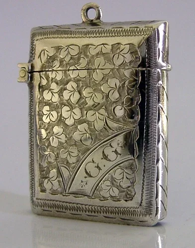 ANTIQUE STERLING SILVER VESTA MATCH CASE 1900 ENGLISH VICTORIAN SHAMROCKS SUPERB