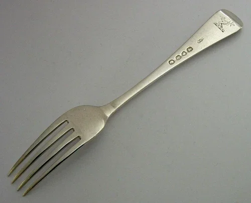 RARE ENGLISH STERLING SILVER COX FAMILY CRESTED FORK 1846 ANTIQUE 43g