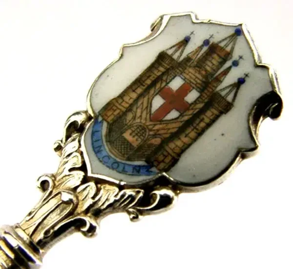 ENGLISH STERLING SILVER ENAMEL LINCOLN SOUVENIR SPOON 1904 ANTIQUE