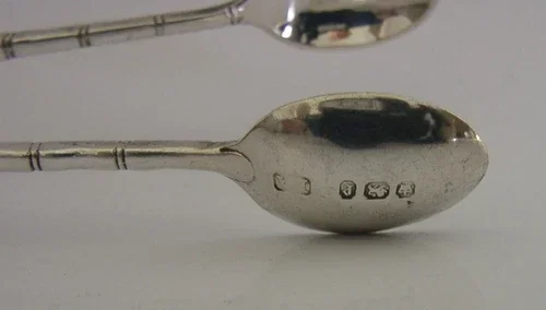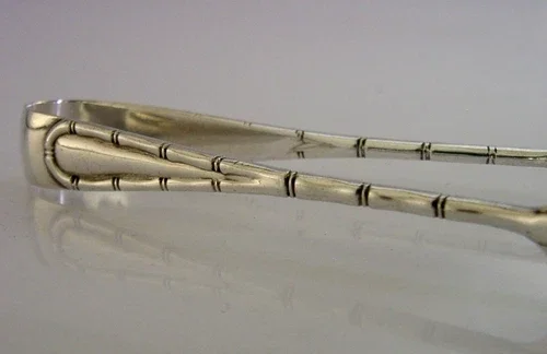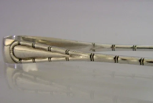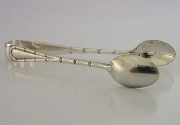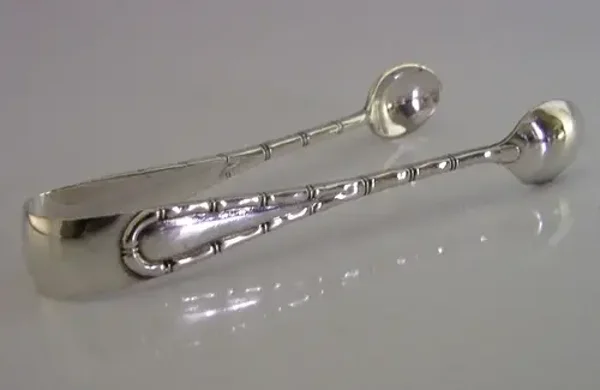 UNUSUAL ENGLISH VICTORIAN SOLID STERLING SILVER BAMBOO SUGAR TONGS 1897