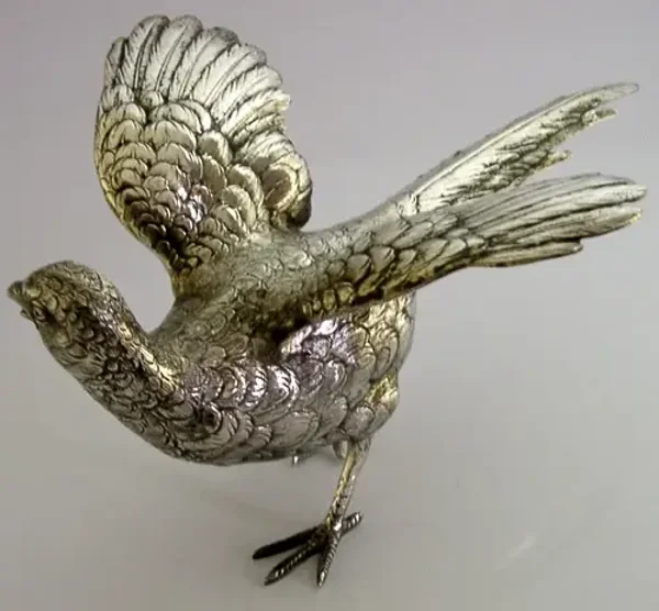 LARGE RARE BELGIUM 835 GRADE SILVER PHEASANT BIRD FIGURE c1960 HUNTING SHOOTING