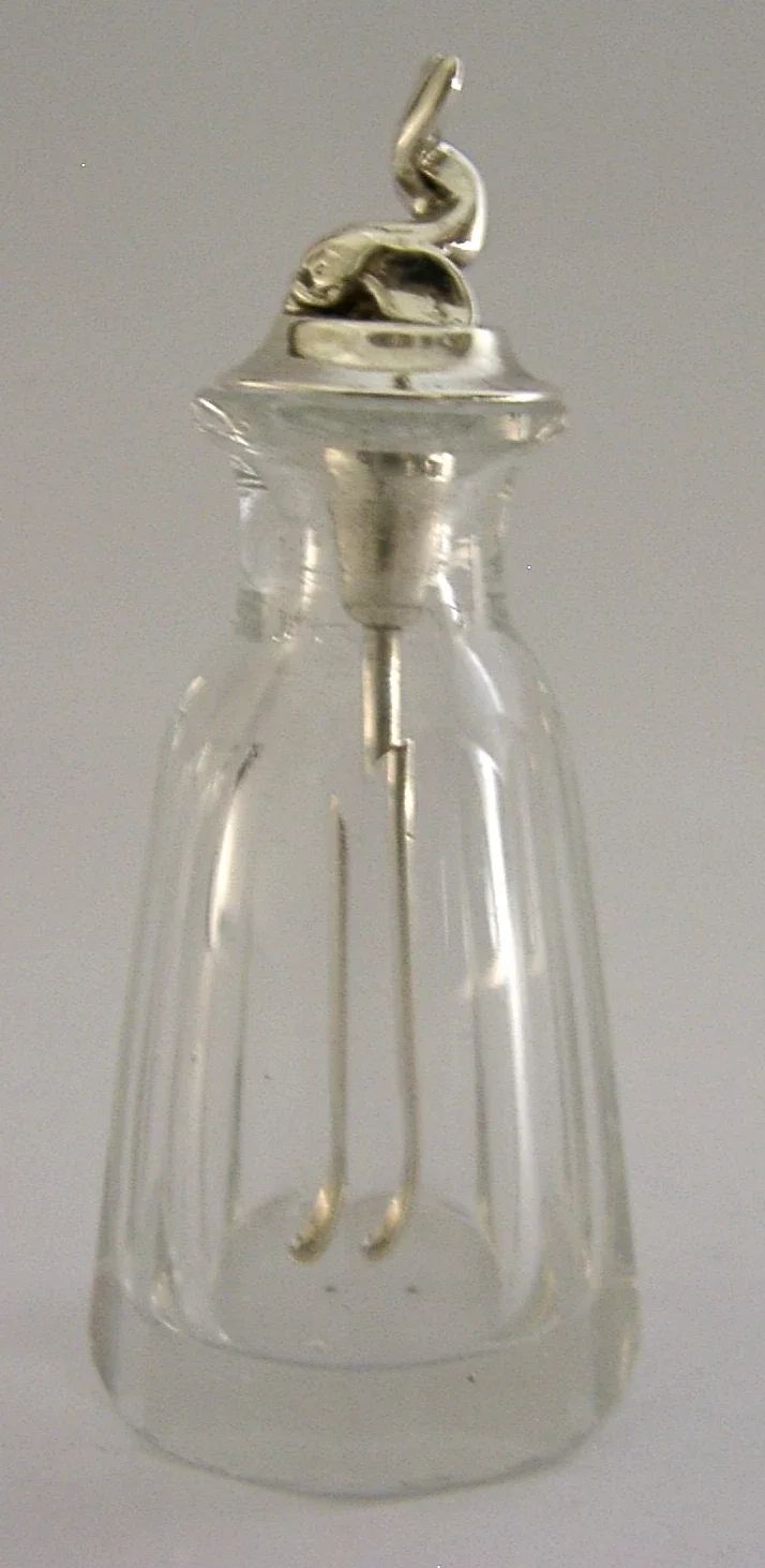 RARE STERLING SILVER DOLPHIN CAYENNE LAUDANUM BOTTLE & SPOON 1904 ANTIQUE