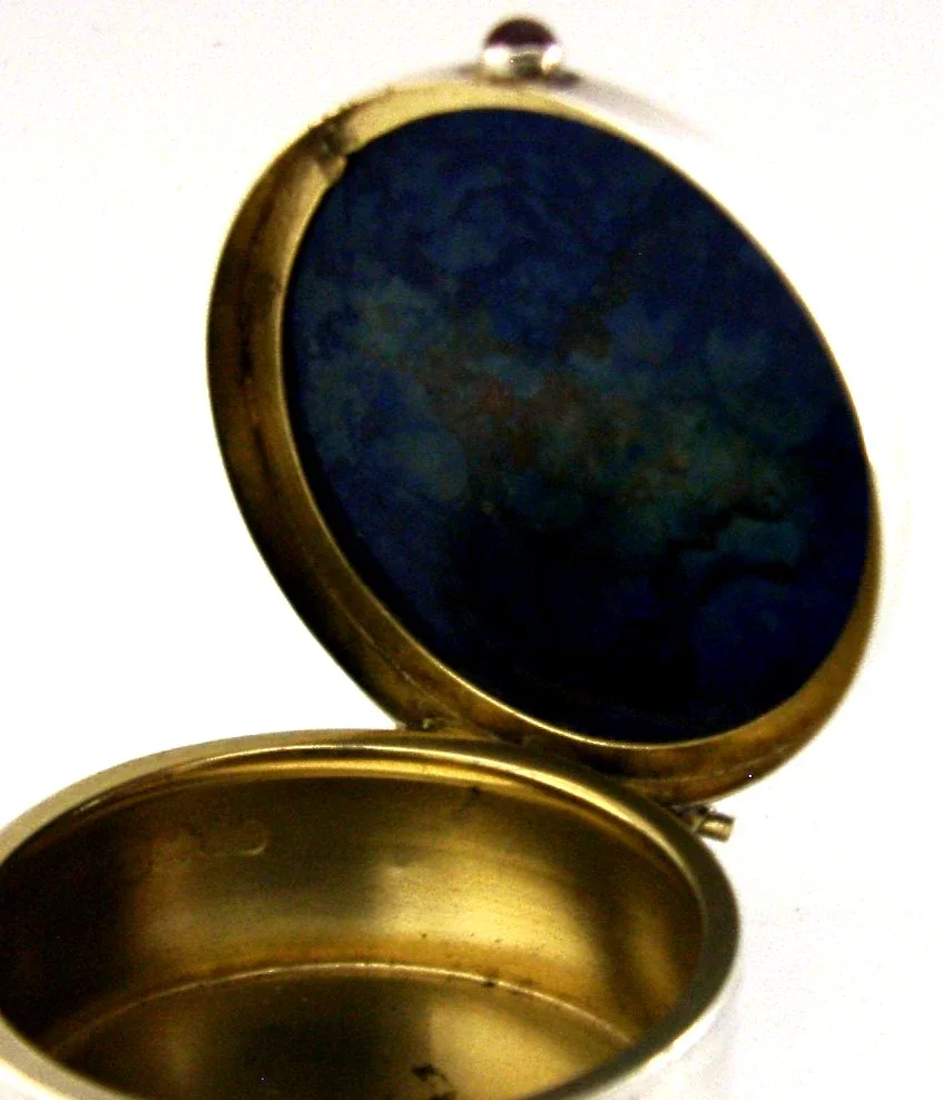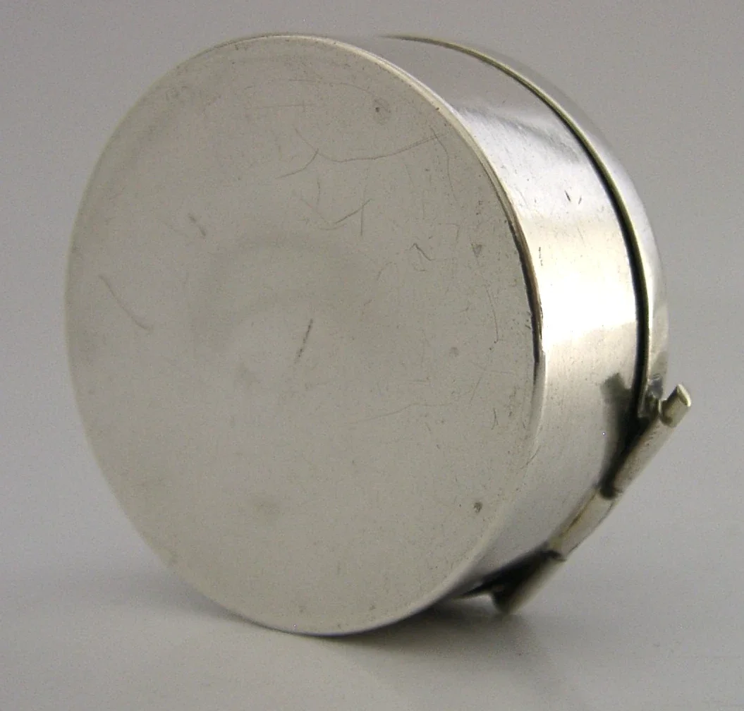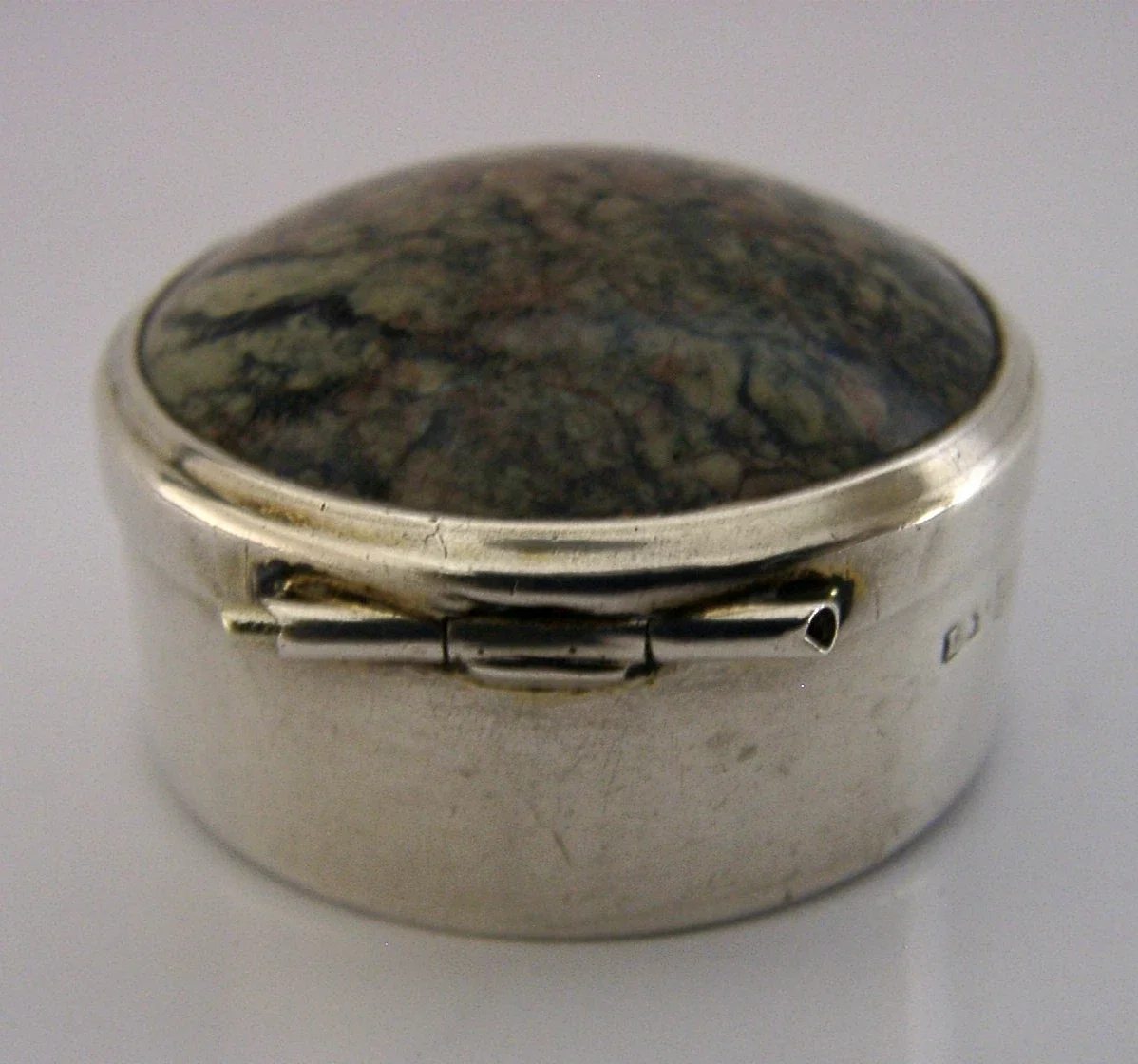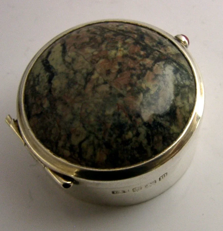 STUNNING ENGLISH SOLID STERLING SILVER AGATE PILL BOX 1911 ANTIQUE 20g