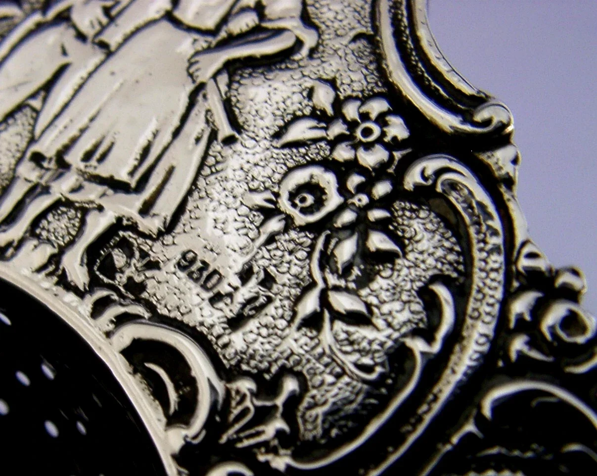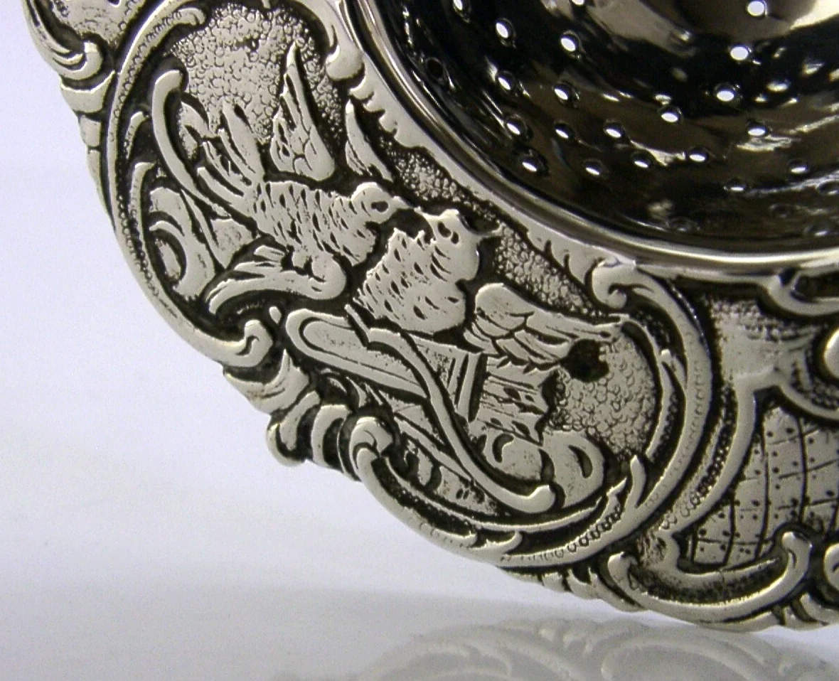 BEAUTIFUL HANAU STERLING SILVER TEA STRAINER CHERUBS CHESTER 1902 52g LOVE BIRDS