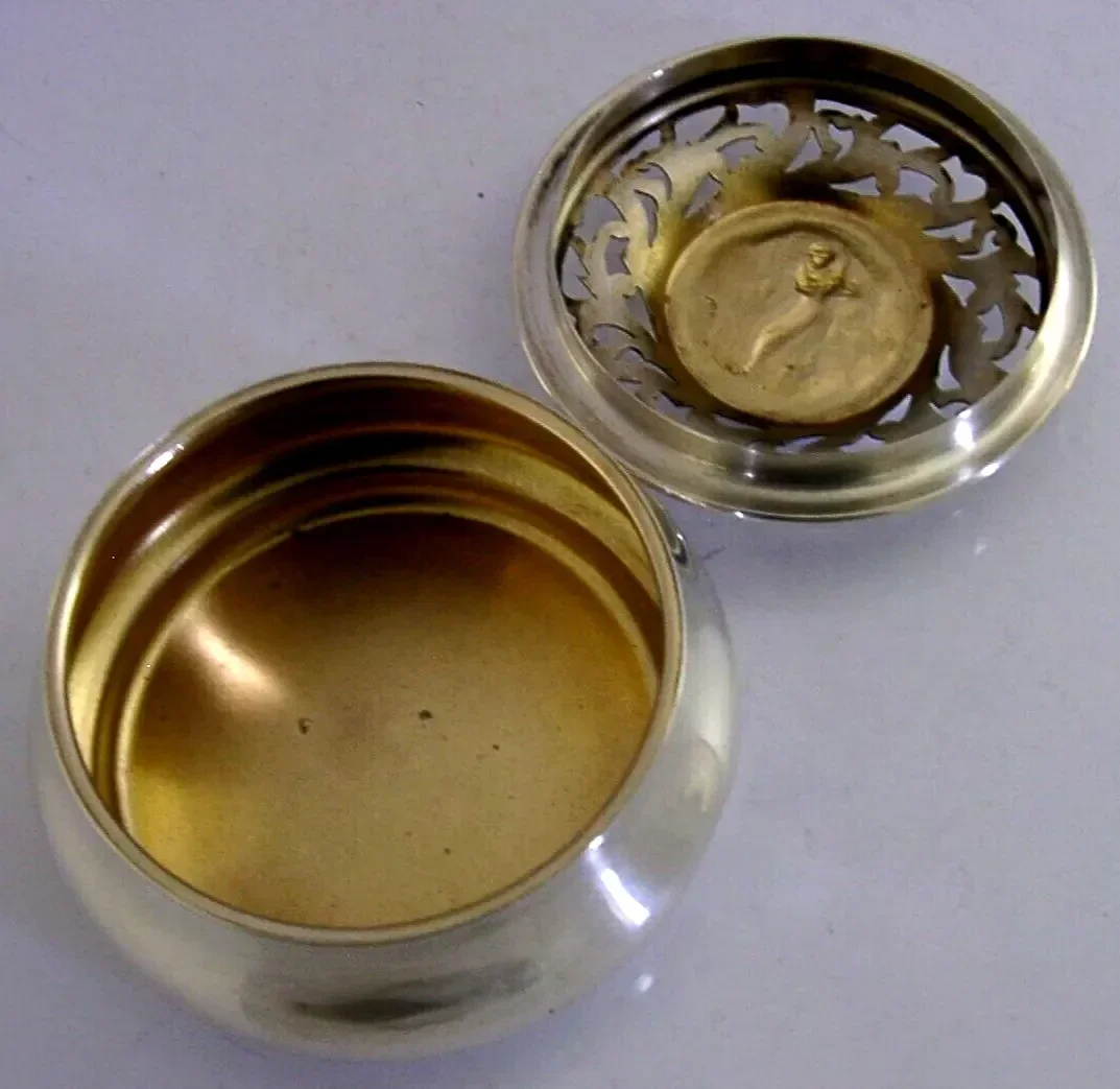 RARE ENGLISH STERLING SILVER LAVENDER POTPOURRI BOX 1904 ANTIQUE LADY GOLFING