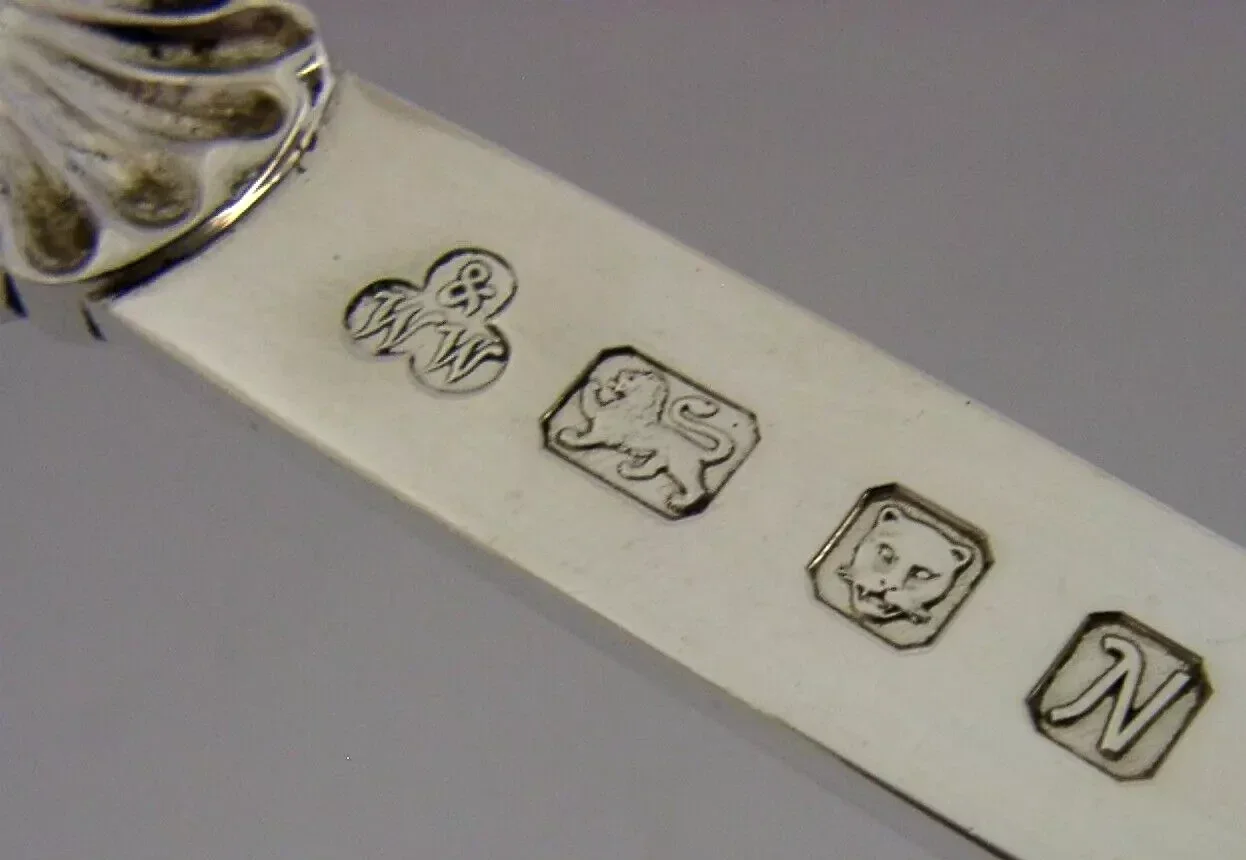 A super quality large impressive English solid sterling silver letter opener / skewer. It is hallmarked for London 1987 with the maker being Wakely & Wheeler. It has been superbly designed and is in super condition being free from dings splits and repairs. It measures approx. 10.25 inches (26cm) long by almost 1 inch (2.3cm) wide and weighs 78 grams. A very nicely designed example.