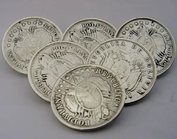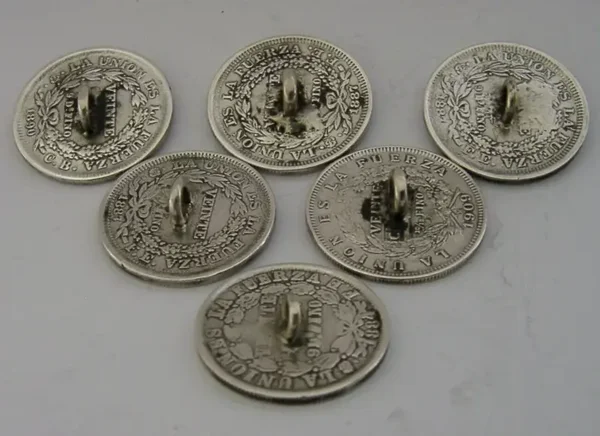UNUSUAL ANTIQUE SOLID SILVER BOLIVIAN COIN BUTTONS 1884 -1909 28g BOLIVIA
