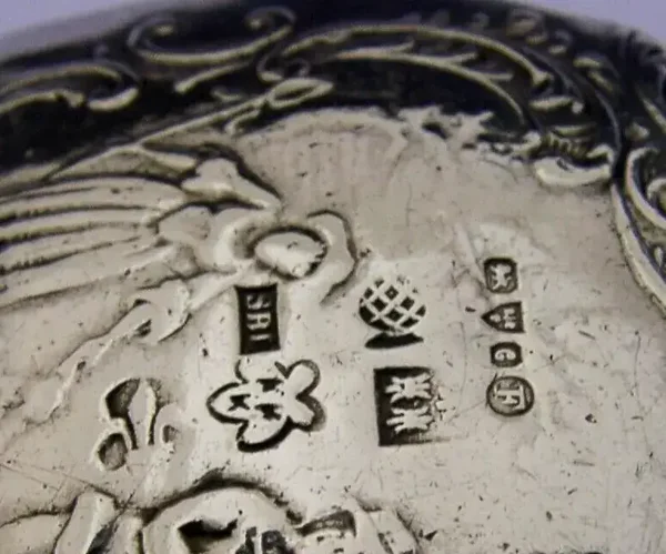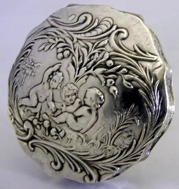 A beautiful decent sized German Hanau export solid sterling silver table snuff or trinket box. It is hallmarked with German Hanau marks for Karl Kurz along with the English import marks of Chester 1903 with the importer being Samuel Boyce (or Boaz) Landeck. It has been superbly made being embossed to the lid with cherubs a classical scene to the base. It is in super condition being free from dings splits holes and repairs, the inside is clean and the lid closes tightly. It measures approx. 2.5 inches (6.3cm) across by 1 inch (2.6cm) tall and weighs 64 grams. A very pretty piece.