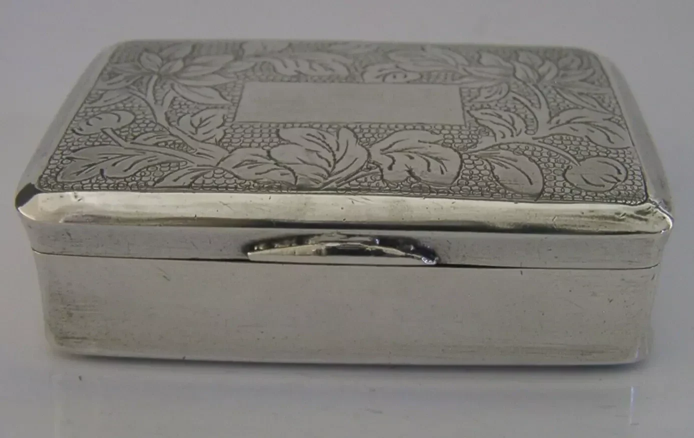 RARE ANTIQUE CHINESE EXPORT SOLID SILVER SNUFF BOX c1860 VICTORIAN ANTIQUE