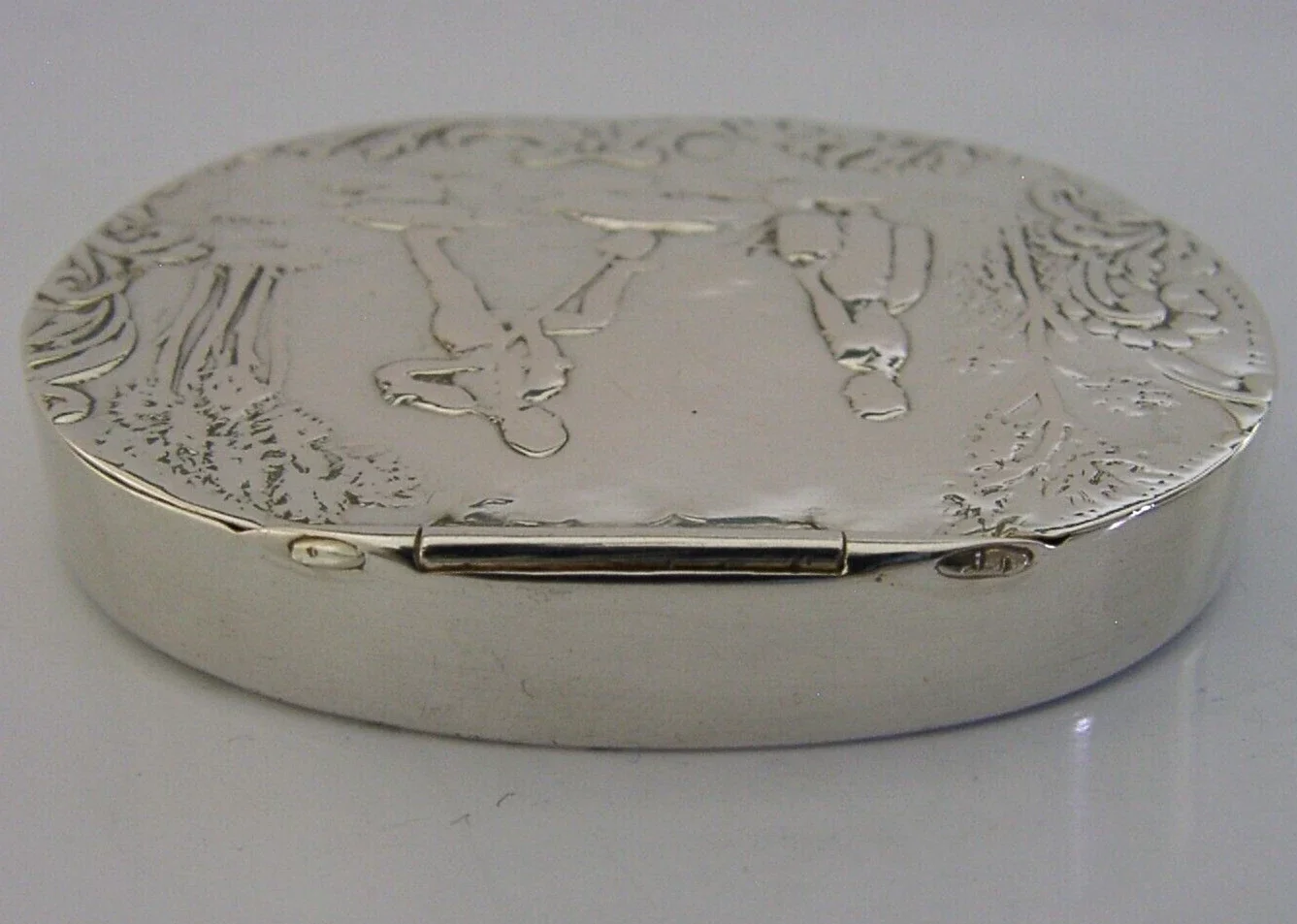BEAUTIFUL DUTCH SOLID SILVER PILL PLOUGHING SNUFF BOX c1900 ANTIQUE DESK ITEM