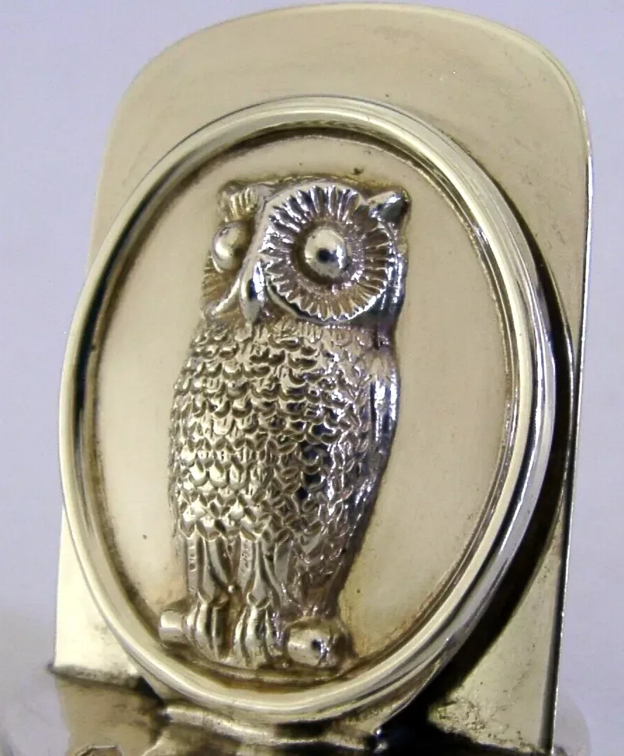 SUPERB HEAVY SOLID STERLING SILVER OWL MENU HOLDER 1987 ANIMAL 42g