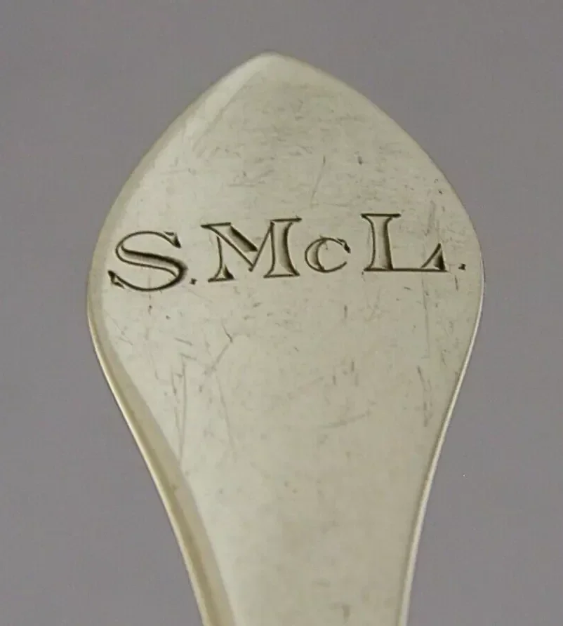A nice quality unusual American solid sterling silver caddy spoon or bonbon spoon. It is hallmarked STERLING along with the makers marks of Arthur Stone of Gardner Massachusetts (1907-1937). I would date it to c1910-1920. It has a very broad bowl and handle engraved SMcL. It is in super condition being free from dings splits distortions and repairs. It measures approx. 4.5 inches (11cms) long by almost 2 inches (4.7cm) wide and weighs 23 grams. A very nice example.