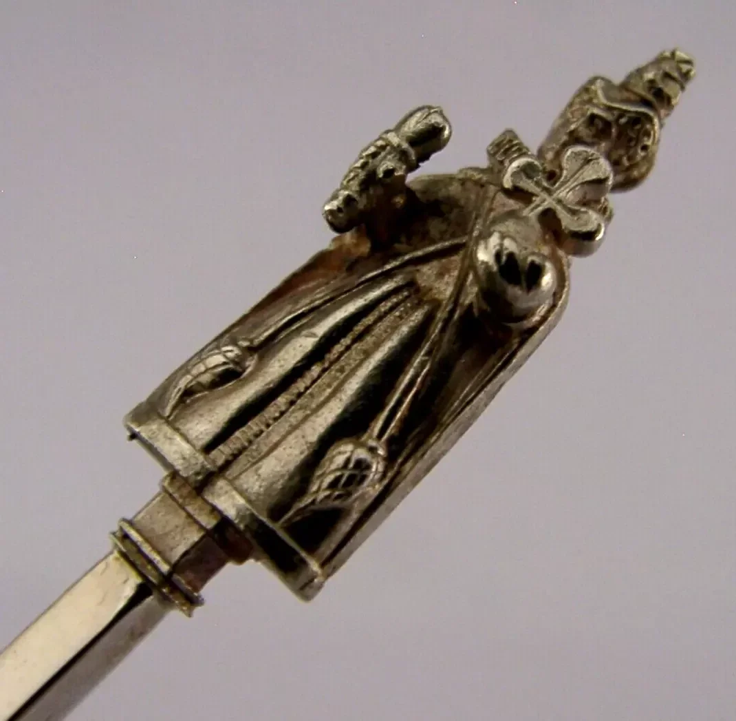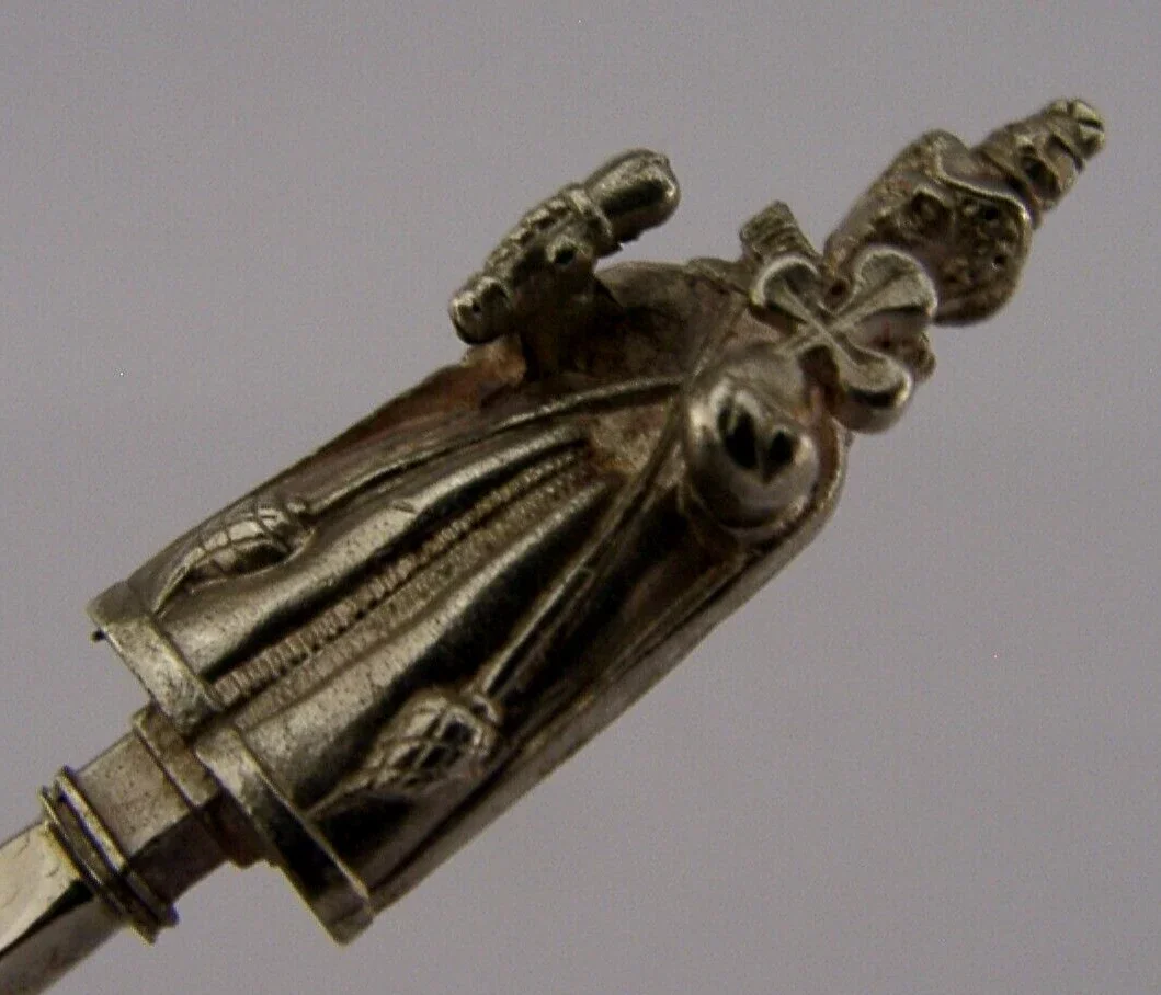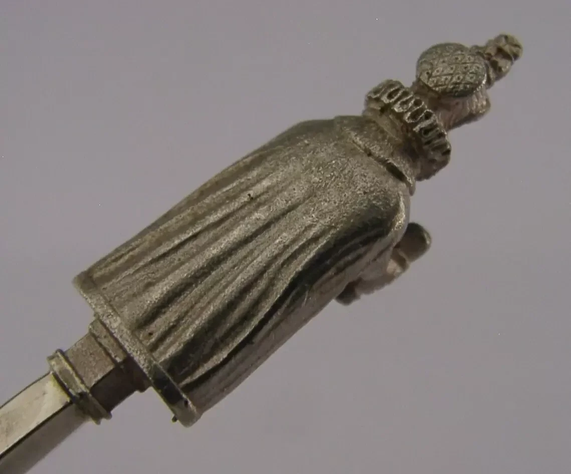 A superb English solid sterling silver spoon. It is hallmarked for Birmingham 1978 with the maker being BM. It has been beautifully made with the terminal being in the form of a Queen Elizabeth I. It is in super condition being free from dings splits and repairs. It measures approx. 5 inches (12.4cm) long by 1.25 inches (3.2cm) wide and weighs 26 grams. A very well made piece.
