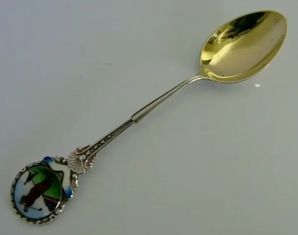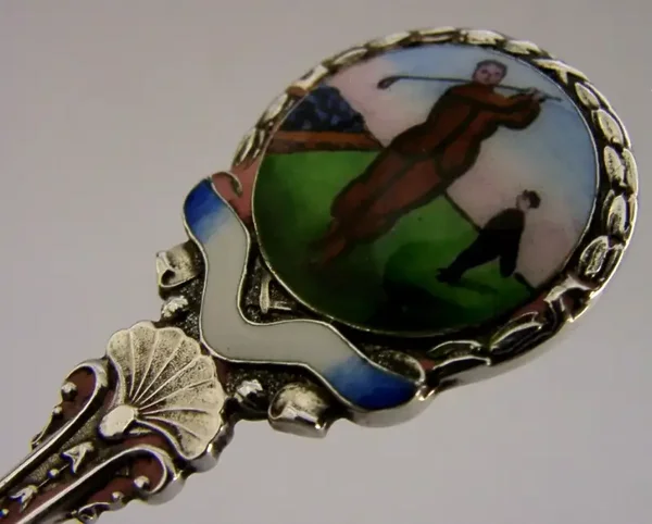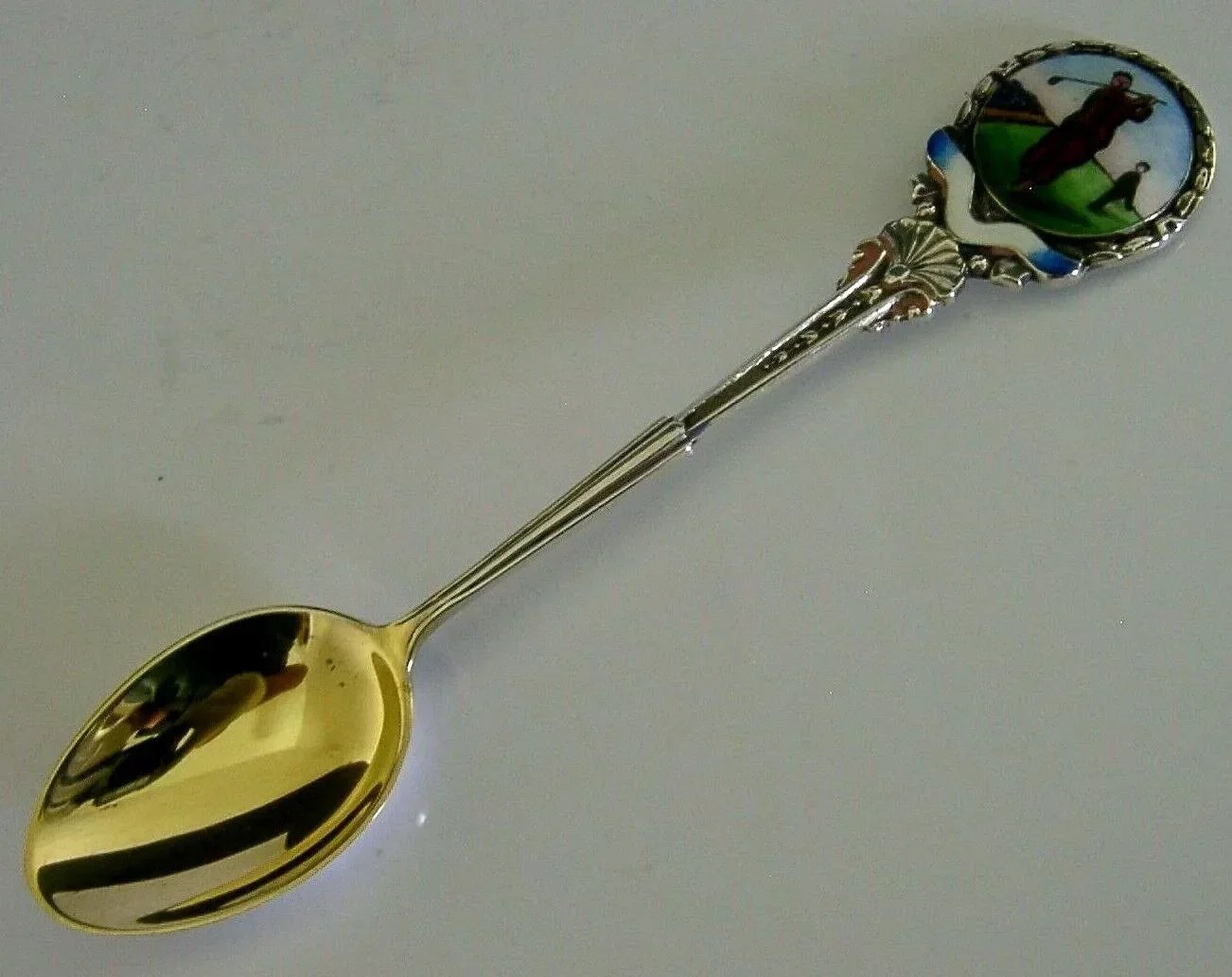 SPORTING ANTIQUE STERLING SILVER ENAMEL GOLF SPOON 1930 ART DECO GOLFING