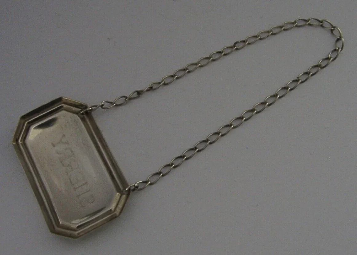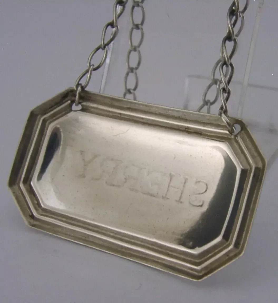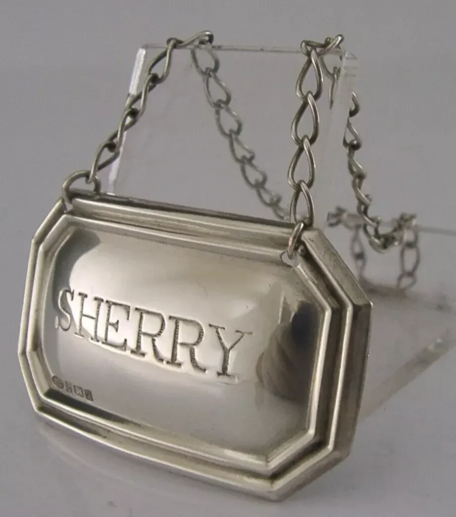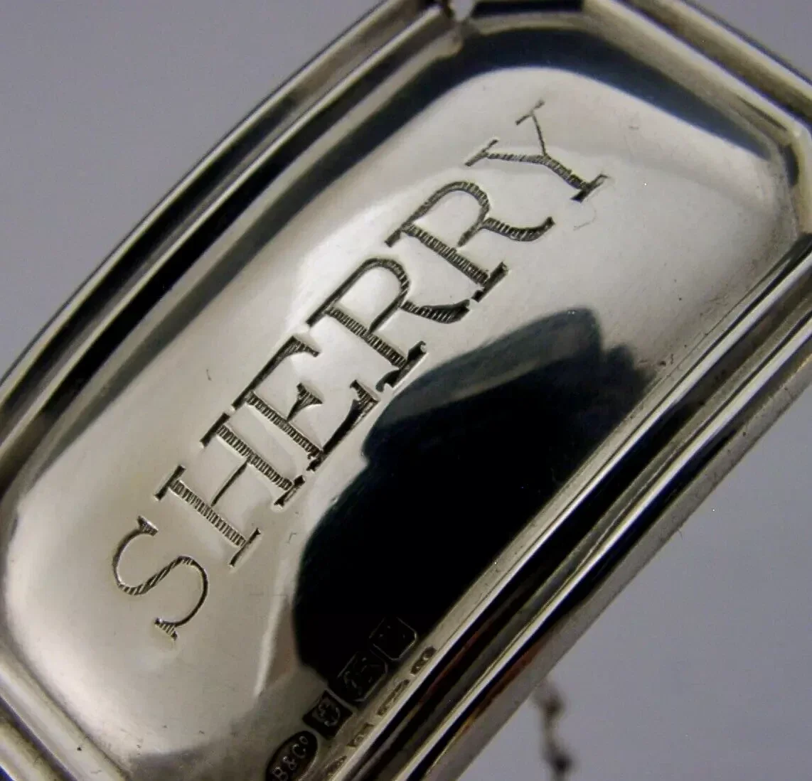ENGLISH STERLING SILVER SHERRY WINE DECANTER LABEL 1994 BARWARE