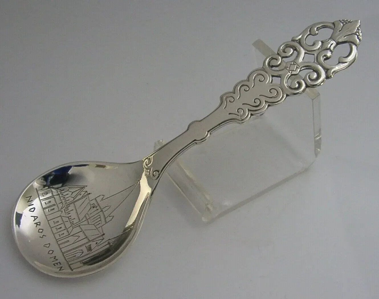 NORWEGIAN 830S SOLID SILVER NIDAROS CATHEDRAL CADDY SPOON c1940 NORWAY