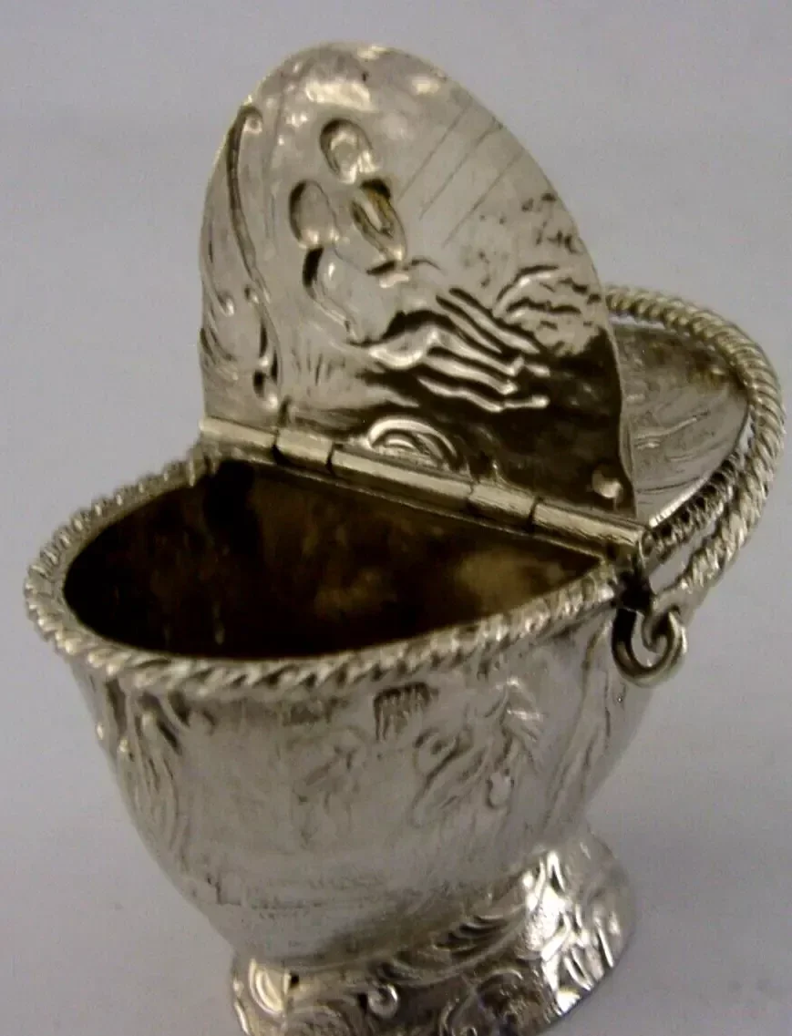 RARE GERMAN HANAU SOLID SILVER BASKET BOX c1900 ANTIQUE 34g