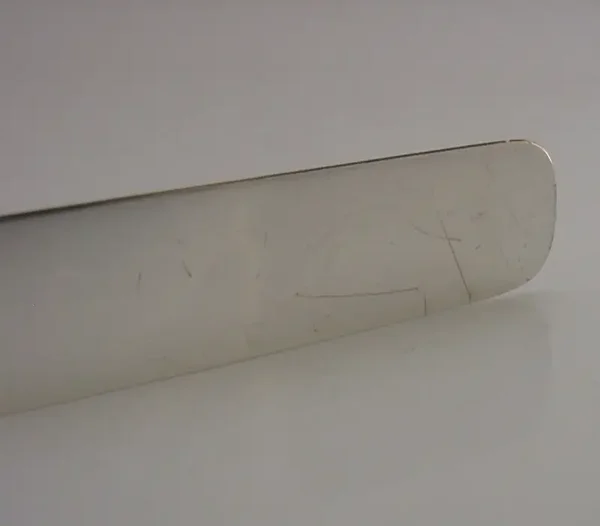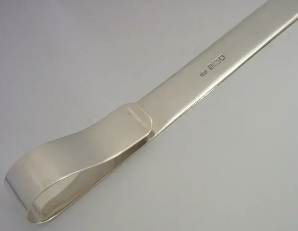 A super quality unusual English solid sterling silver letter opener / paper clip. It is hallmarked for London 1907 with the maker being J&C. It has been superbly designed and is in super condition being free from dings splits and repairs, light scratches to the reverse see final photo. It measures approx. 8.5 inches (21.5cm) long by almost 1 inch (2.3cm) wide and weighs 73 grams. A very nicely designed example.