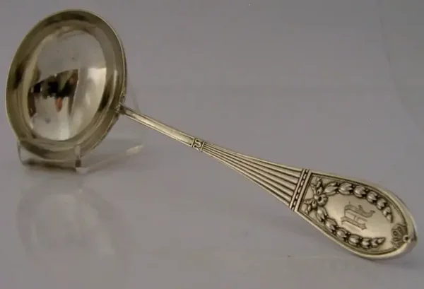 A beautiful German antique solid silver sauce ladle. It is hallmarked with the German crescent moon and crown mark, the 800 standard mark and the makers mark of Koch & Bergfeld who operated in Bremen from 1859. I would date it to c1910. It has been beautifully made and is in super condition being free from dings splits and repairs, engraved U. It measures approx. 7.5 inches (19cm) long by 2.5 inches (6.6cm) wide and weighs 64 grams. A very nice quality piece.