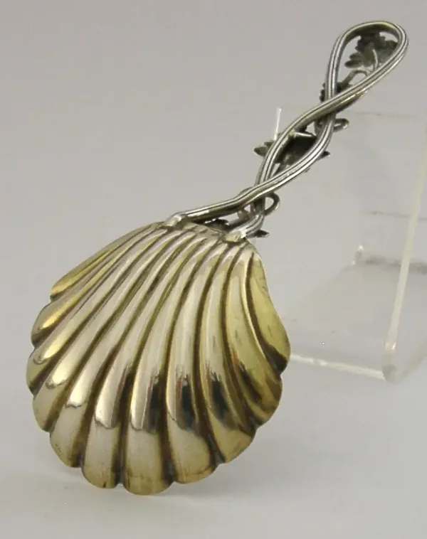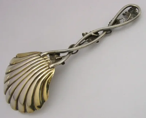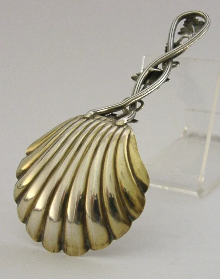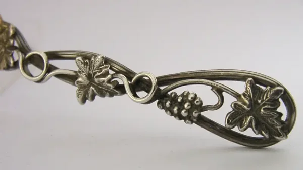 RARE ENGLISH VICTORIAN STERLING SILVER GRAPE VINE CADDY SPOON 1854 ANTIQUE