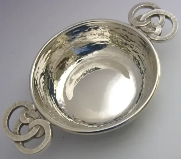 SUPER R E STONE STERLING SILVER PLANISHED QUAICH CUP BOWL 2004 ARTS & CRAFTS 86g