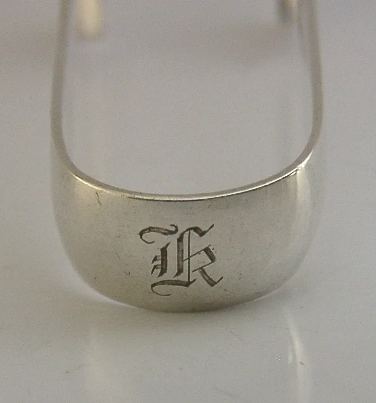 Unusual English antique solid sterling silver asparagus tongs. They are hallmarked for Sheffield 1908 with the maker being C W Fletcher & Son Ltd (Charles William Fletcher). They are highly sprung and in good working order. They are in superb condition being free from dings splits distortions and repairs,engraved K. They measure approx. 3.25 inches (8.2cm) long by 1.25 inch (3.2cm) across the grips and they weigh 18 grams. Interesting oddities.