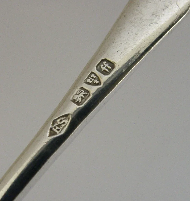 A very nice quality English antique solid sterling silver spoon. It is hallmarked for Chester 1931 with the maker being ES. It has been superbly designed with the terminal being in the form of the Staffordshire knot. It is in super condition being free from dings splits distortions and repairs. It measures over 4 inches (10.5cm) long by over 0.75 inch (2.4cm) wide and weighs 10 grams. A very nicely designed piece.