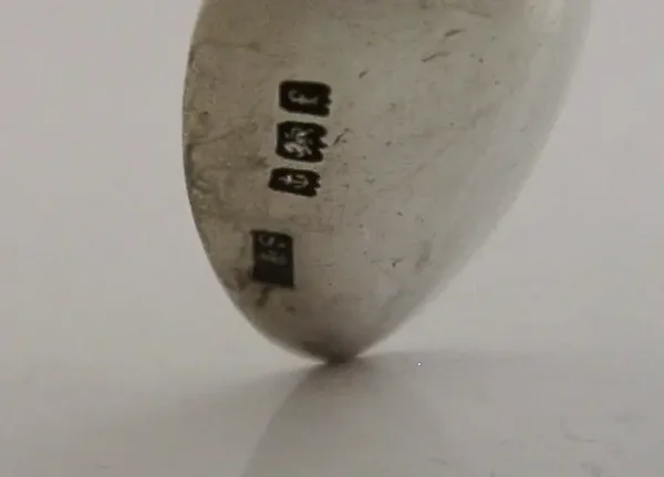 A more unusual Edwardian English sterling silver star sign spoon. It is hallmarked for Birmingham 1905 with the makers marks being L&S. It has been nicely design having the Aquarius zodiac star sign to its terminal. It is in super condition being free from dings splits distortions and repairs. It measures over 4 inches (10.3cms) long and weighs 11 grams. A pretty little piece.