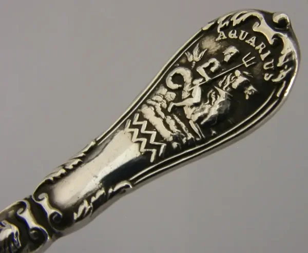 ANTIQUE 1905 ENGLISH ZODIAC STERLING SILVER AQUARIUS STAR SIGN SPOON HOROSCOPE