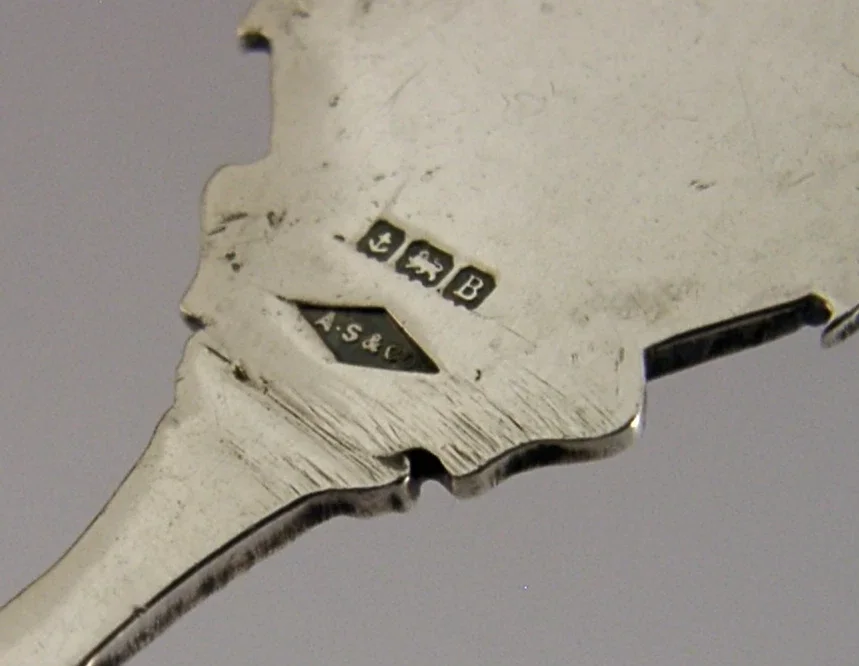 A rare English solid sterling silver and enamelled caddy spoon. It is hallmarked for Birmingham 1926 with the maker being that of A S & Co. It has been well designed having its terminal enamelled and decorated with the Masonic Lodge of Arts & Crafts No.4134. . It is in super condition being free from dings splits and repairs. It measures approx. 3.25 inches (8.2cm) long by 1.25 inches (3.2cm) wide and weighs 22 grams. A very good quality unusual example.