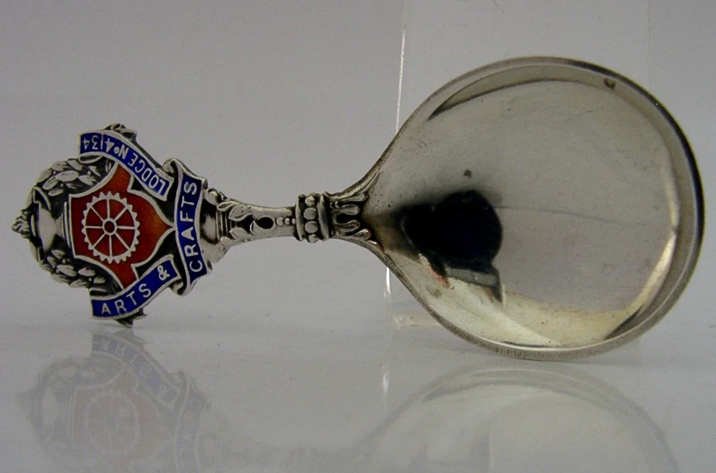 STERLING SILVER ENAMEL MASONIC CADDY SPOON 1926 ARTS & CRAFTS LODGE 4134