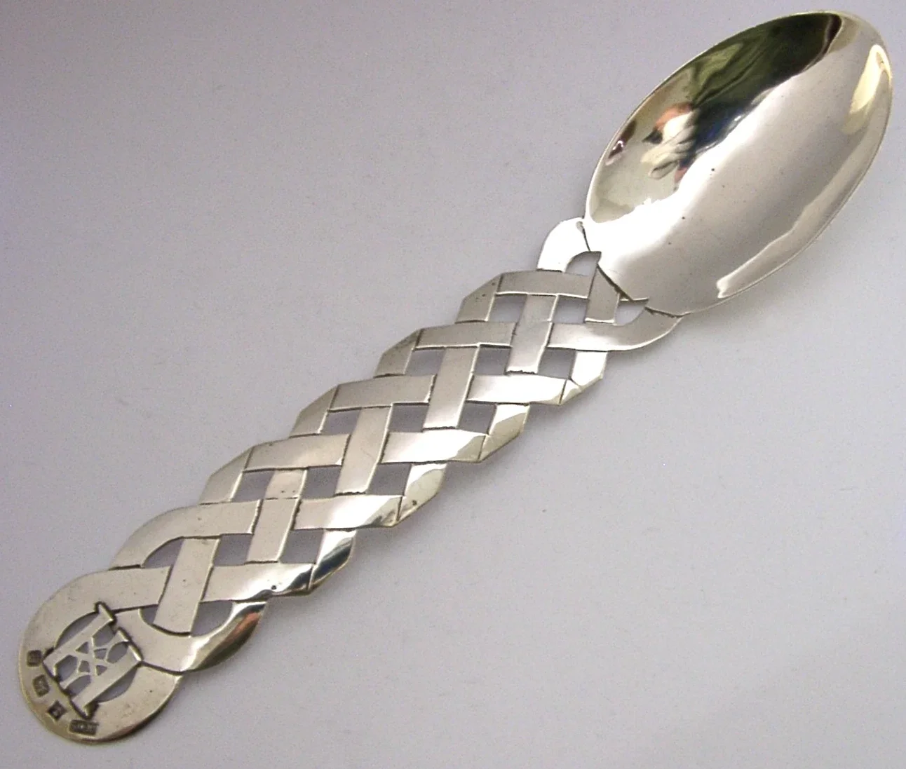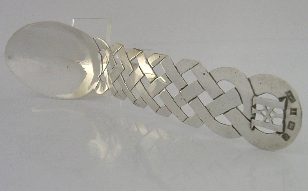 8 inch HAND MADE WELSH LOVE SPOON STERLING SILVER 1979 ARTS & CRAFTS 52g RARE