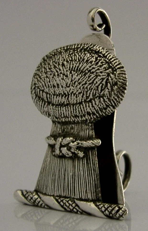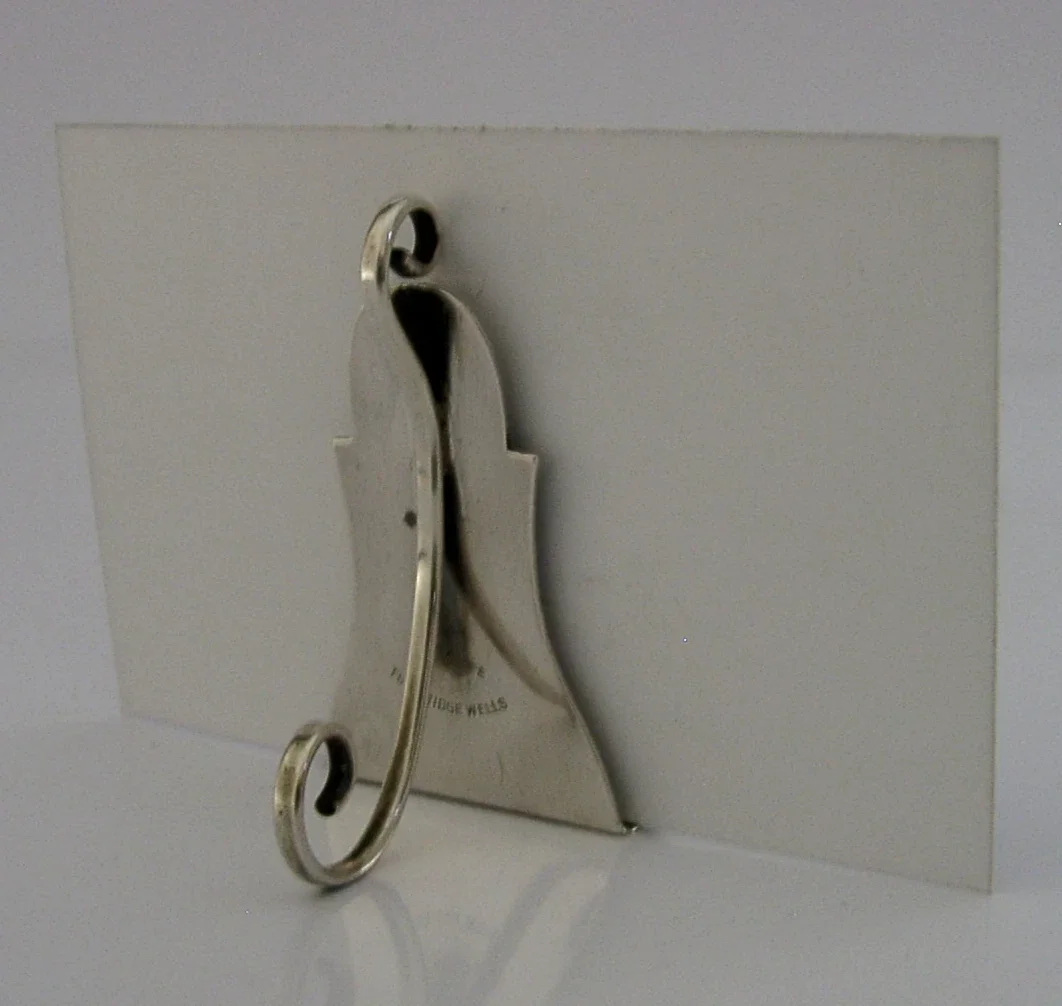 A superb rare English antique solid sterling silver place card or menu holder. It is unmarked other than the maker DRAKE TUNBRIDGE WELLS but tests as sterling silver - most likely commissioned so not sent to the assay office. I would date it to c1900-1920. It has been made in the form of a wheat sheaf crest used by the Milnes, Compson and Routledge Families (were they any wealthy families of these names living around Tunbridge Wells in the early 20th century?). It is in superb condition being free from dings splits and repairs. It measures approx. 2 inches (5.3cm) tall by 1.5 inches wide (standard business card shown for size) and weighs 23 grams. A rare piece.