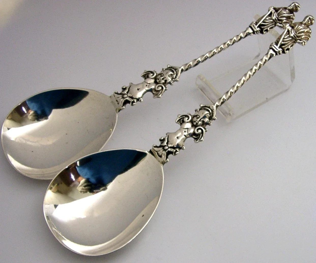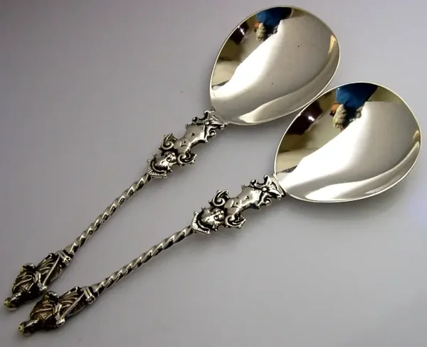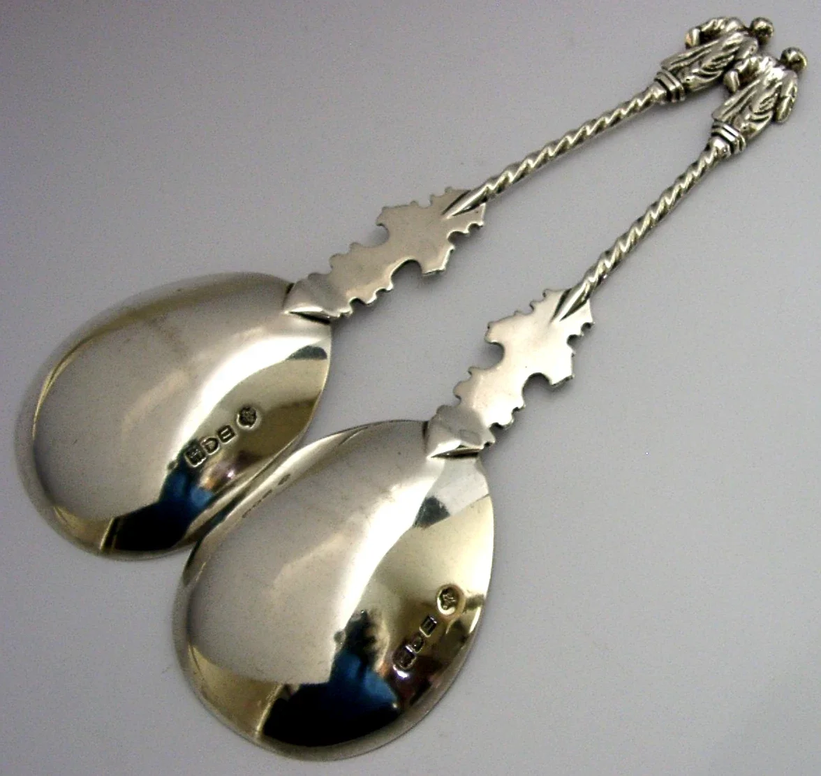 EDWARDIAN ENGLISH ANTIQUE STERLING SIVER APOSTLE SERVING SPOONS 1908 ANTIQUES