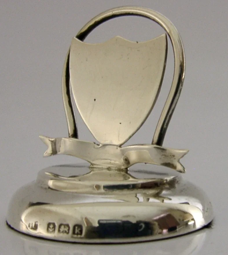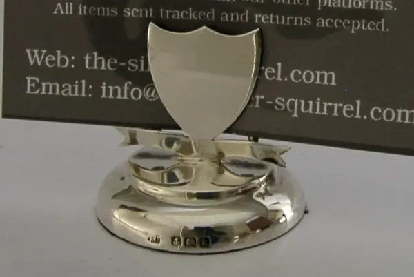 ENGLISH SOLID STERLING SILVER SHIELD MENU HOLDER PLACE MARKER 1909 ANTIQUE