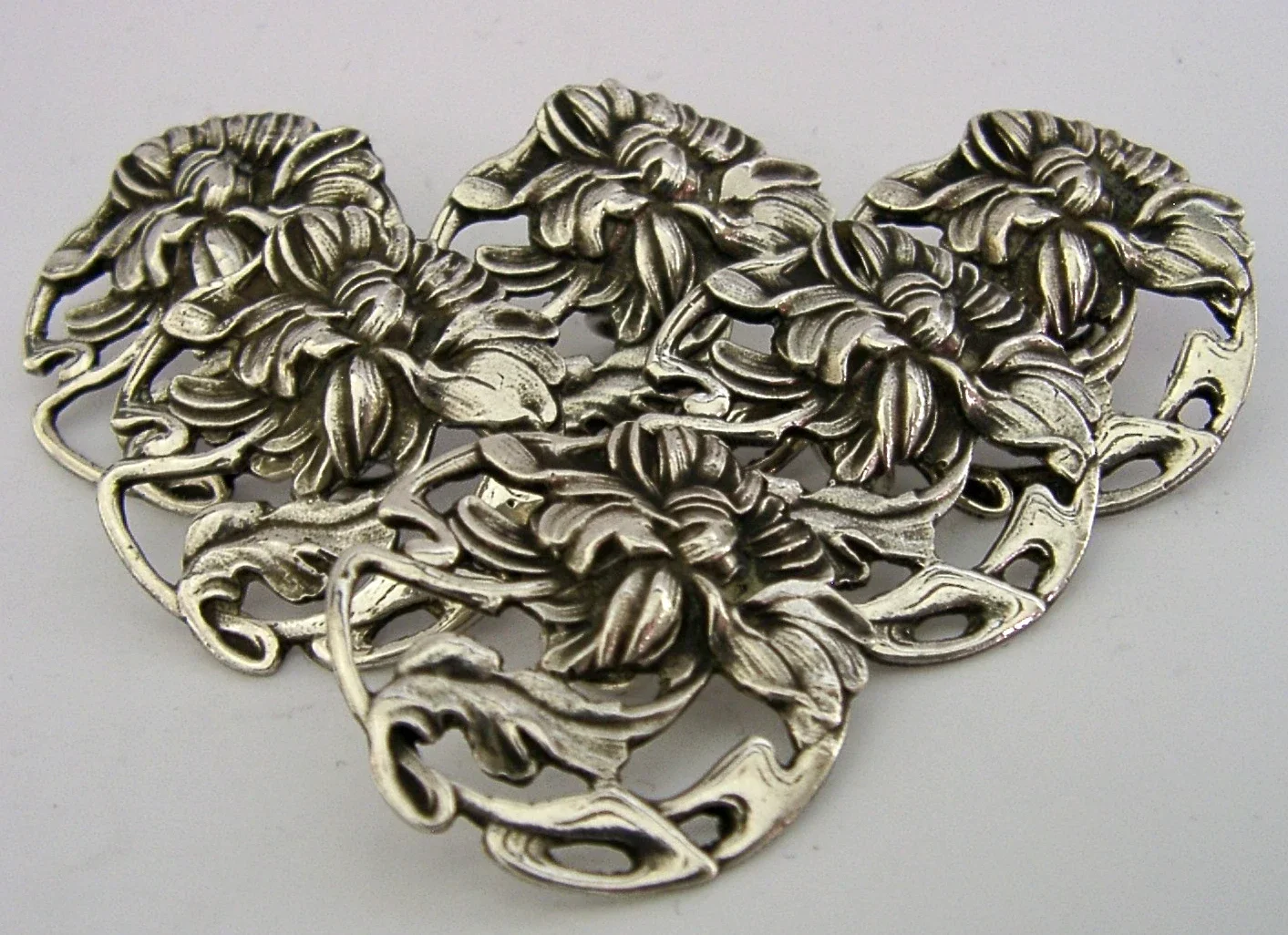 SIX LARGE STERLING SILVER ART NOUVEAU FLOWER BUTTONS 1903 ANTIQUE ENGLISH