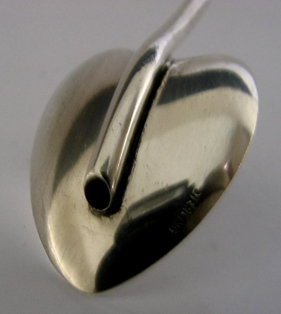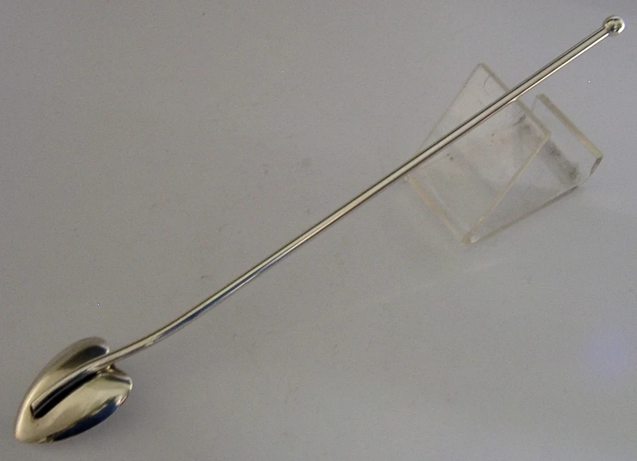 A nicely designed sterling silver cocktail or ice tea straw / mixer. It is hallmarked STERLING. I would date it to c1970. It has a hollow stem and heart shaped bowl. It has been superbly designed and is in super condition being free from splits and repairs. It measures approx. 8 inches (20cm) long and weighs 1o grams. A more unusual piece.