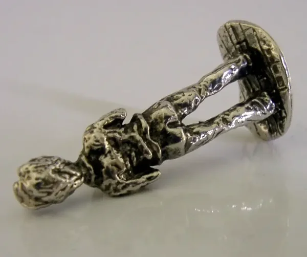 A very unusual cast solid sterling silver miniature figure. It is hallmarked for London 1976 with the maker’s marks being SMC. It has been wonderfully designed in the form of Oliver Twist with his bowl asking for 'more'. It is in super condition being free from dings splits and repairs. It measures approx. 2 inches (4.6cms) tall by a touch under 1 inch across the base and weighs 15 grams. A very well-made little piece.