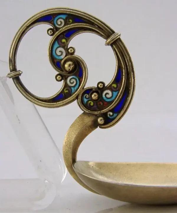 SUPERB STERLING SILVER GILT PLIQUE A JOUR CADDY SPOON c1900 NORWEGIAN ANTIQUE