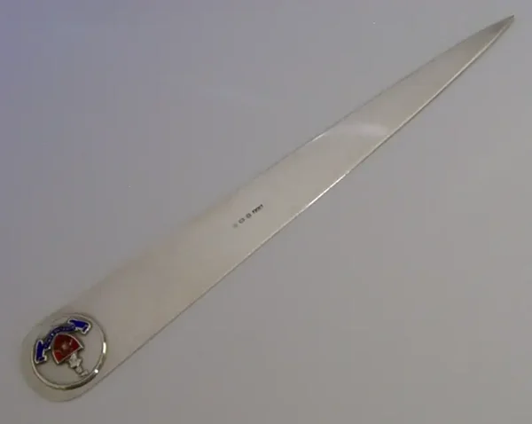 STERLING SILVER ENAMEL NEW OXFORD BHAM HOUSE DESK ENVELOPE OPENER 1937