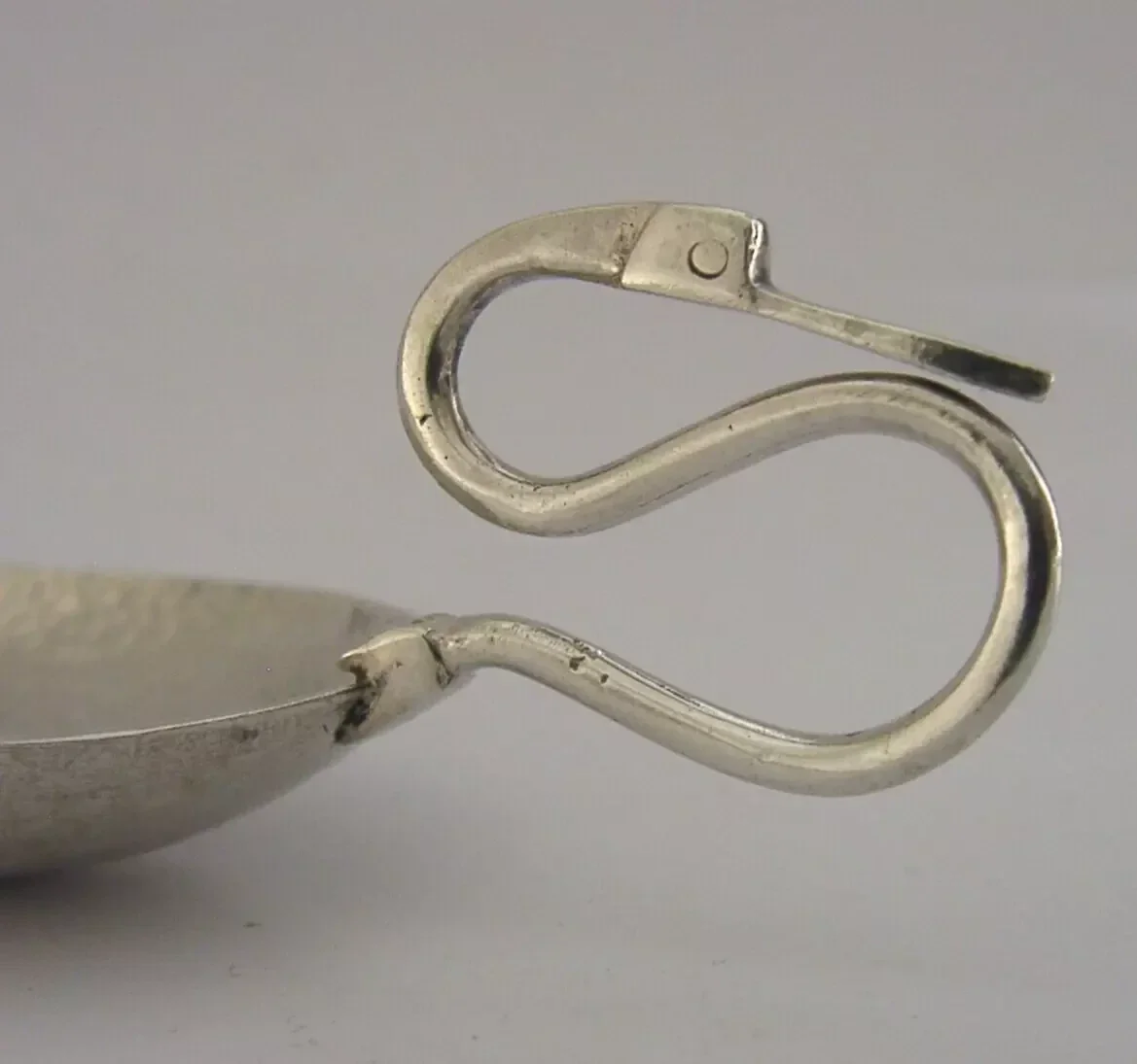 A beautiful rare English solid sterling silver Christening spoon. It is hallmarked for Birmingham 1973 with the maker being Deakin & Francis Ltd. It has been superbly made as a replica of a Roman Christening or Baptism spoon. It is in superb condition being free from dings splits distortions and repairs. It measures approx. 4.5 inches (11.2cm) long by 1.75 inches (4.6cm) wide and weighs 36 grams. An interestingly made piece.