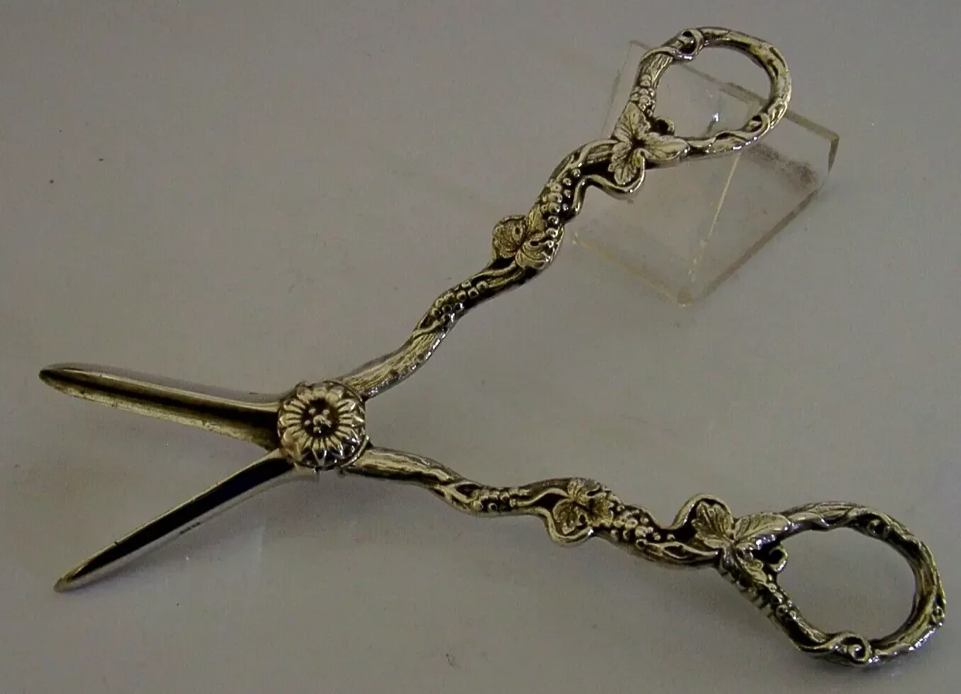 MINT ENGLISH CASED SOLID STERLING SILVER GRAPE SHEARS 1966 BARWARE 106g HEAVY