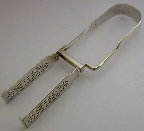 High quality English antique solid sterling silver asparagus, vegetable, or sandwich serving tongs. They are hallmarked for London 1875 with the maker being HL over HL. They have been superbly made and engraved with the crest of the Robbins or Robyns Family and the initials RMR, you should be able to use these initials to find out which Robbins family was wealthy enough to have owned these back in the day. They are highly sprung and in good working order. They are in superb condition being free from dings splits distortions and repairs. They measure approx. 9 inches (22.8cms) long by over 1.25 inch (3cm) wide and they weigh 177 grams. Super quality interesting examples.