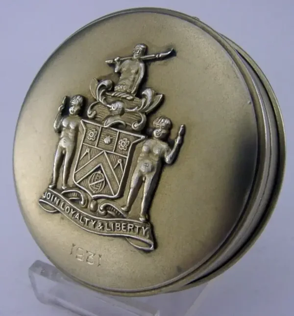 RARE STERLING SILVER GILT WORSHIPFUL COMPANY of JOINERS & CEILERS COMPACT 1930
