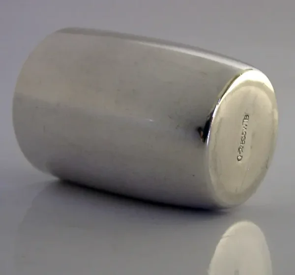 A nice quality German solid silver shot cup. It is hallmarked with German 835 silver standard mark and a makers mark. I would date it to c1940-1950s. It has been well made and is in superb condition being free from dings splits distortions and repairs. It measures approx. 1.75 inches (4.4cm) tall by 1.25 inches (3.2cm) across the rim and weighs 16 grams. A nice quality piece.
