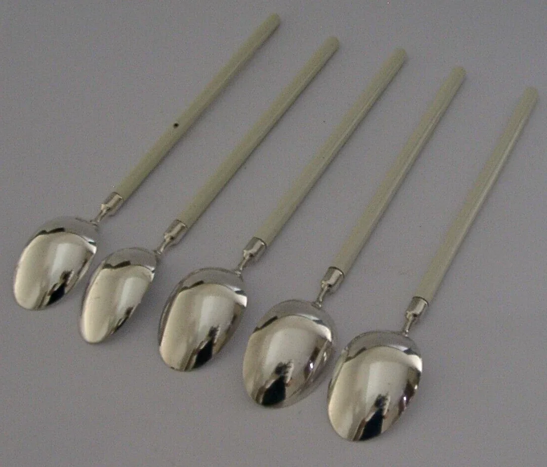 5 HANS HANSEN DANISH DESIGNER SOLID SILVER CERAMIC SUNDAE SPOONS c1950 MODERNIST